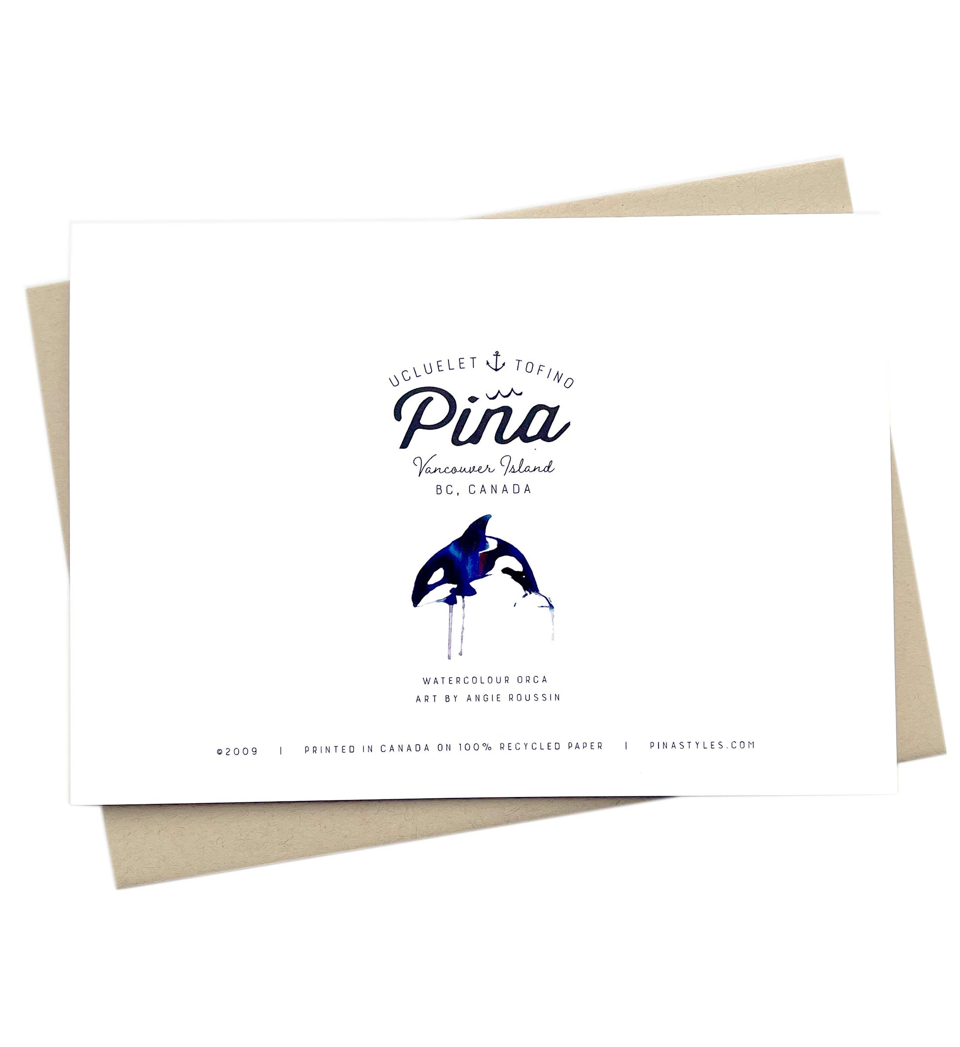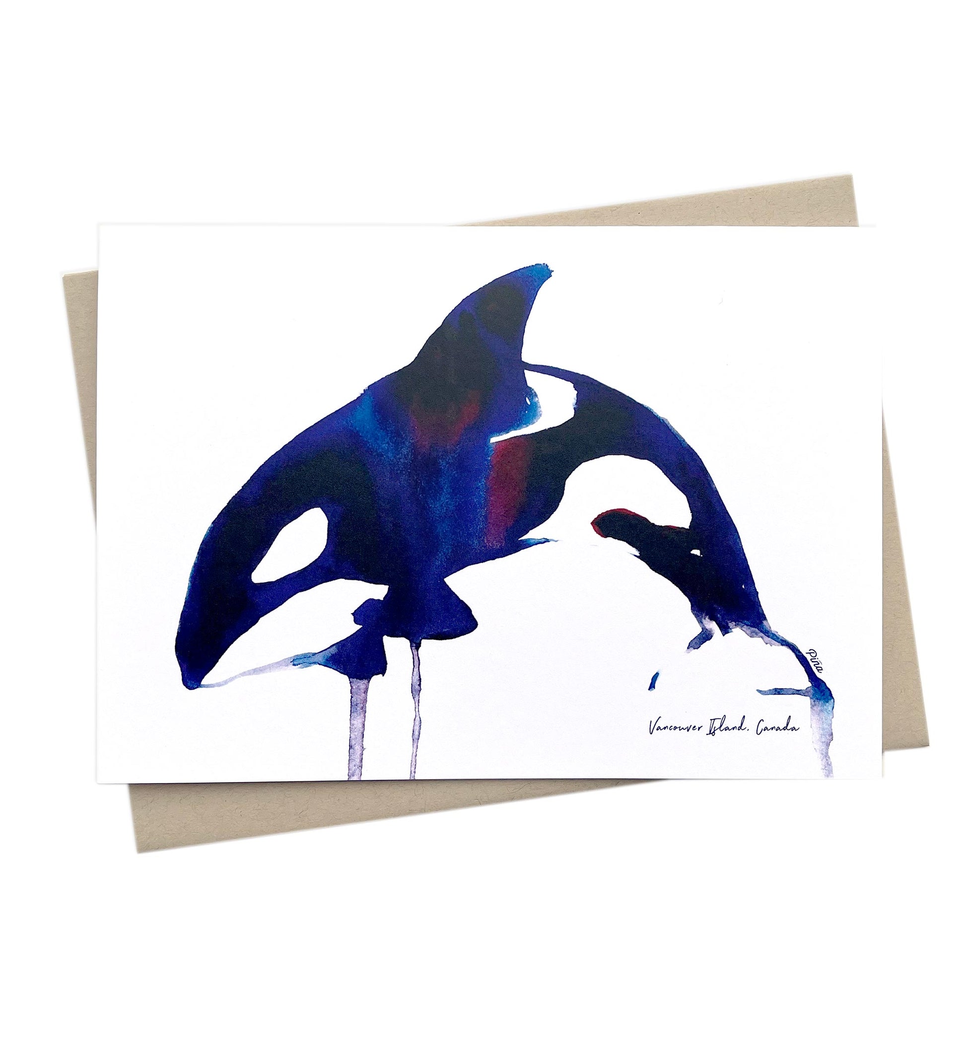 This greeting card features our Watercolour Orca design dripping with rich blues and purples and printed on a high quality, recycled card stock.
