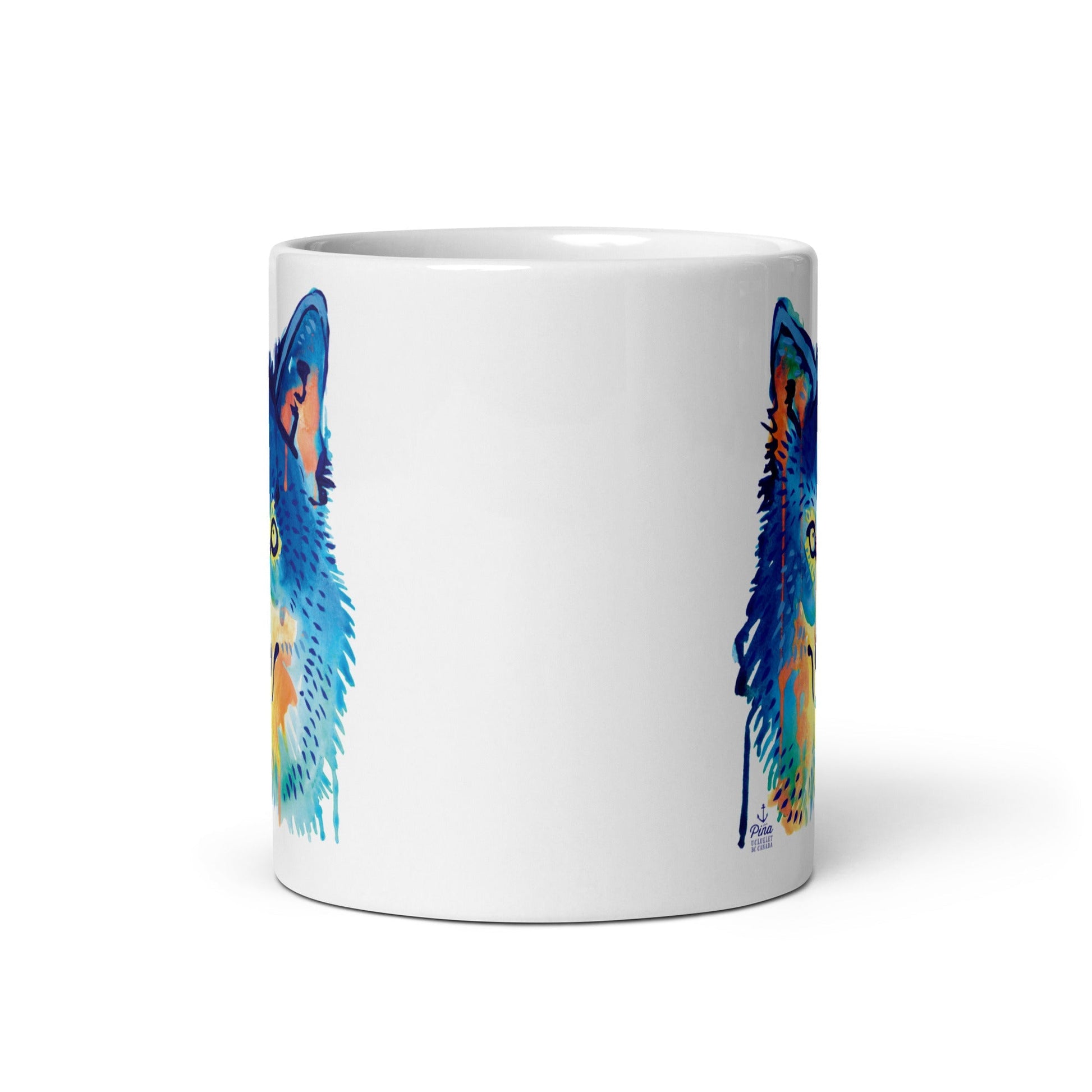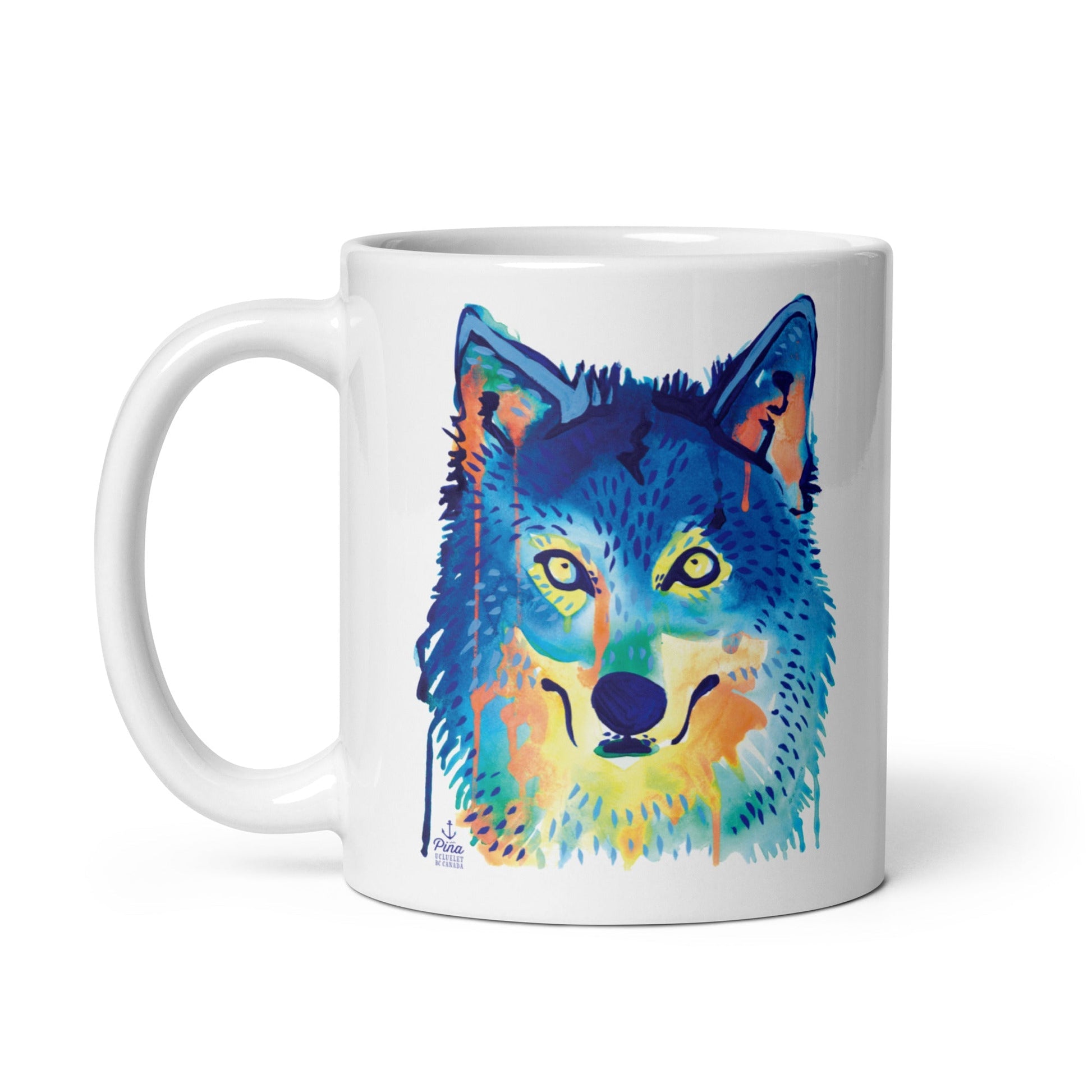 Whether you're drinking your morning coffee, evening tea, or something in between—this mug's for you! Printed with our super-colourful Watercolour Wolf Face design. A real crowd pleaser for nature and art lovers alike.