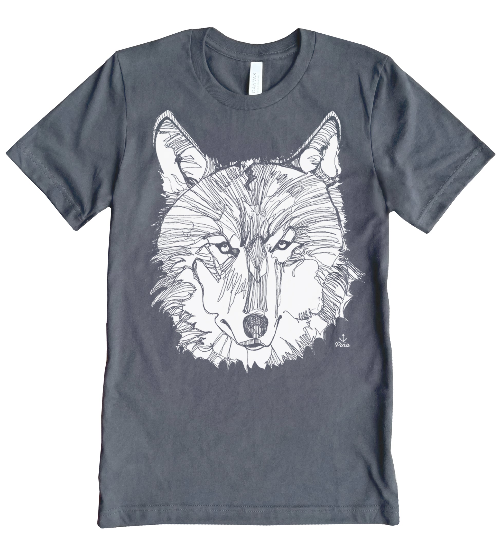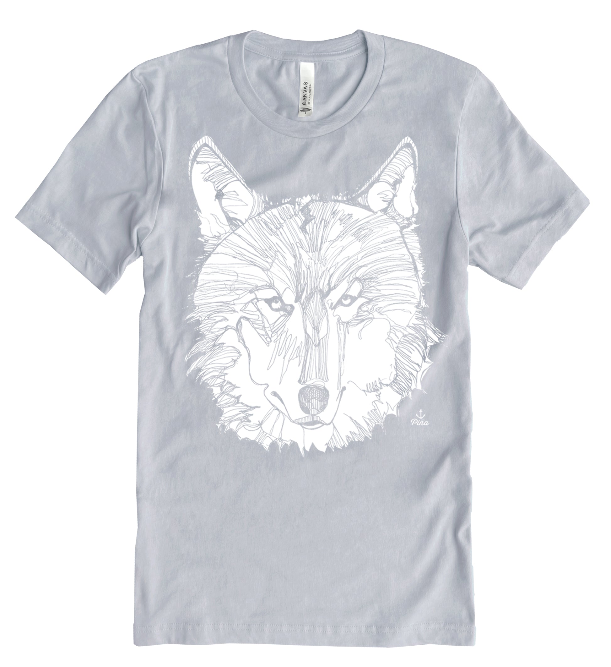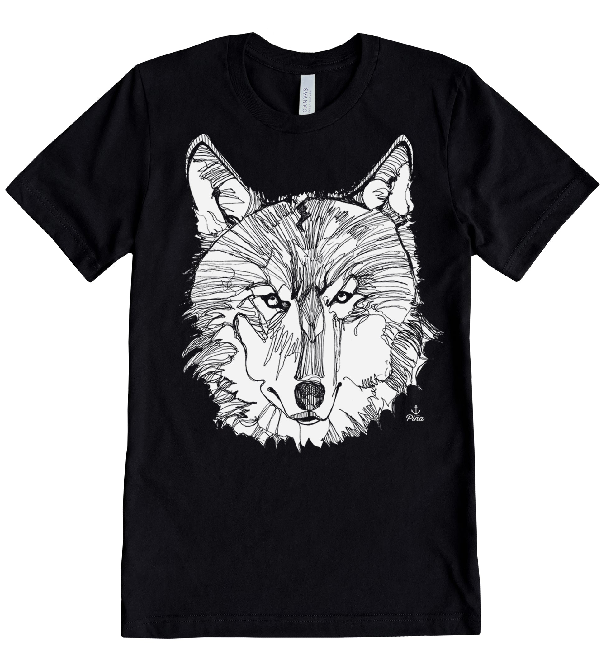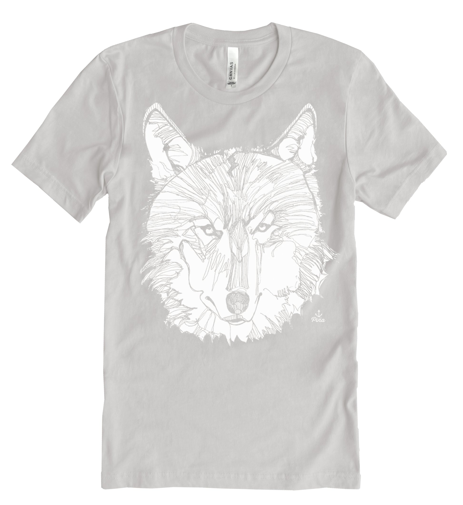 Our detailed Wolf Face design printed in white ink on the front of a unisex, cotton jersey t-shirt.