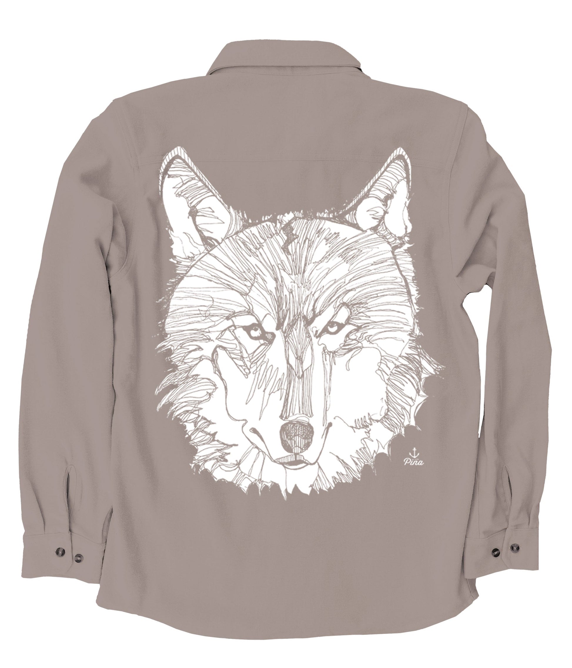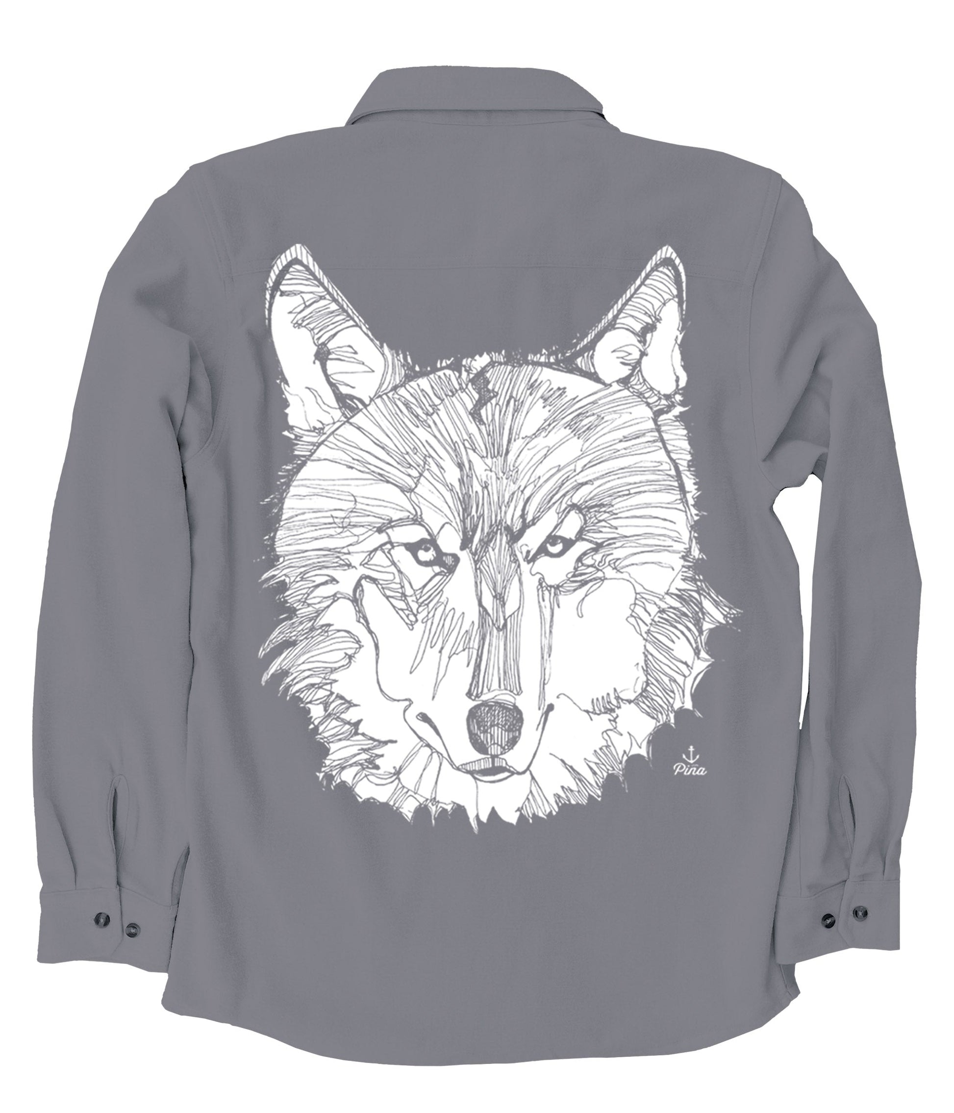 This soft and comfortable unisex flannel is printed with our detailed Wolf Face design in white ink on the back.